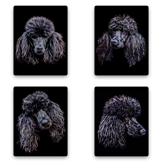 Black Standard Poodle Coasters, Set of 4, with Stunning Fractal Art Design. - Set of all 4