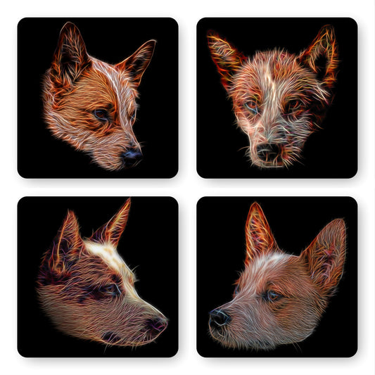 Australian Cattle Dog - Red Heeler Coasters, Set of 4, with Stunning Fractal Art Design, Red Heeler Owner Gift - Set of all Designs