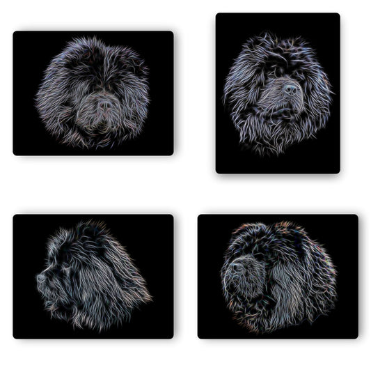 Black Chow Chow Coasters with Fractal Art Design - Set of all 4