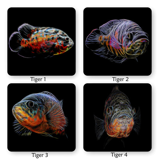 Oscar Cichlid Coaster with Stunning Fractal Art Design. Choose One of 14 Oscar Fish Designs - Tiger #4