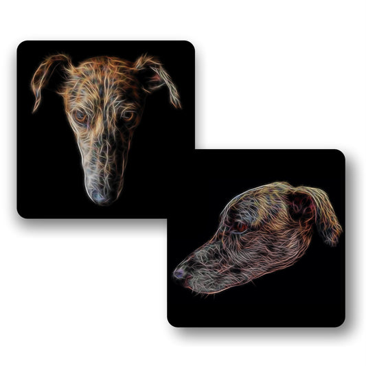 Brindle Lurcher Coasters, Set of 2, with Stunning Fractal Art Design. - Set of Both Designs