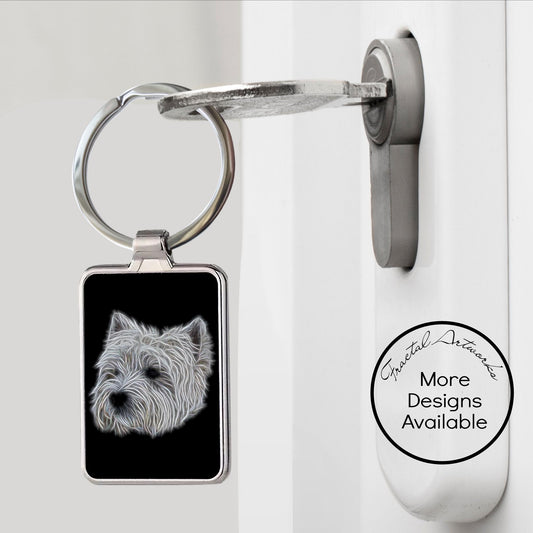 Westie Metal Rectangle Keychain. West Highland Terrier gift for Dog Lovers. - Fractal Art Keychain - High Quality Metal Keychain - Westie 1