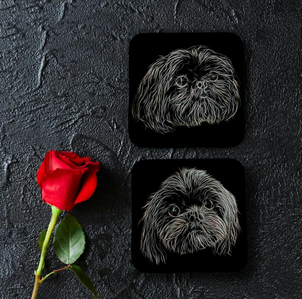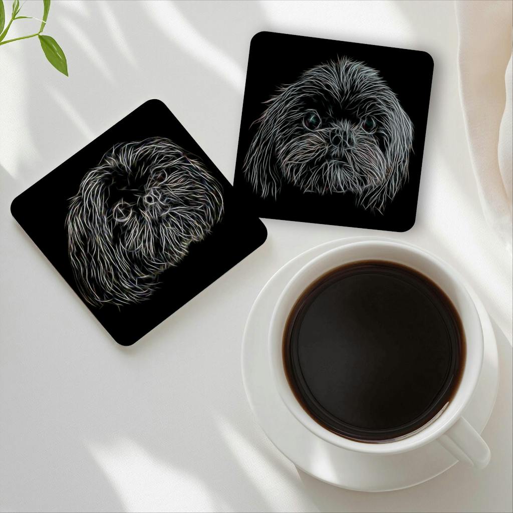 Black Shih Tzu Coasters with Fractal Art Design. Perfect Shih Tzu Owner Gift.