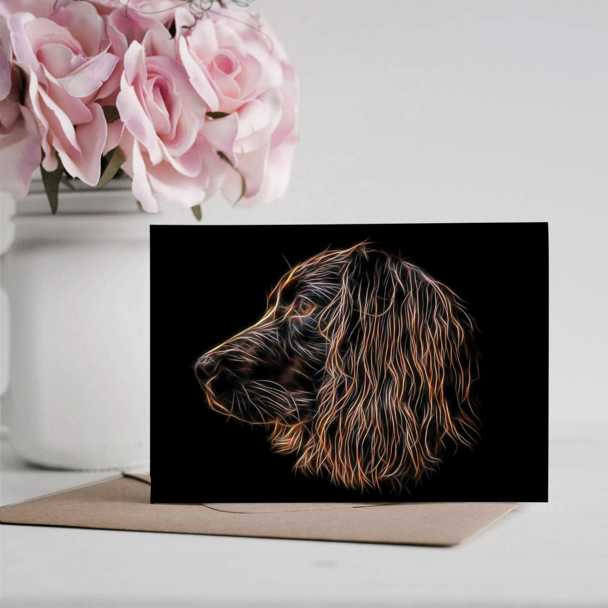 Chocolate Working Cocker Spaniel Greeting Card with Stunning Fractal Art Design. Blank Inside for Birthdays or any other Occasion