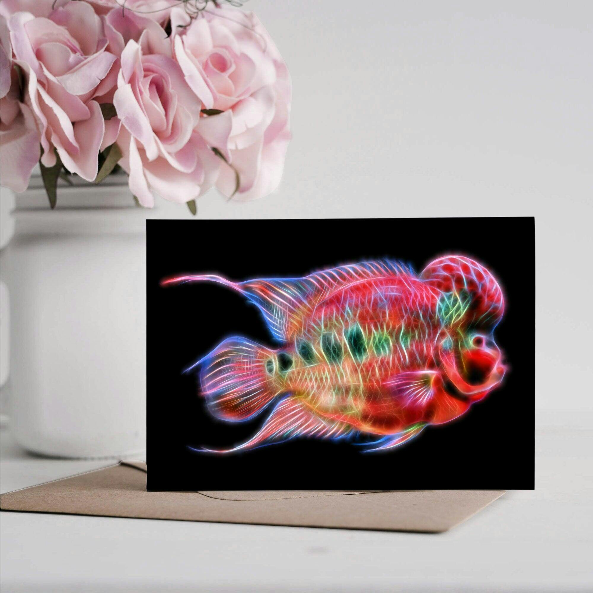 Flowerhorn Greeting Card with Stunning Fractal Art Design. Blank Inside for Birthdays or any other Occasion