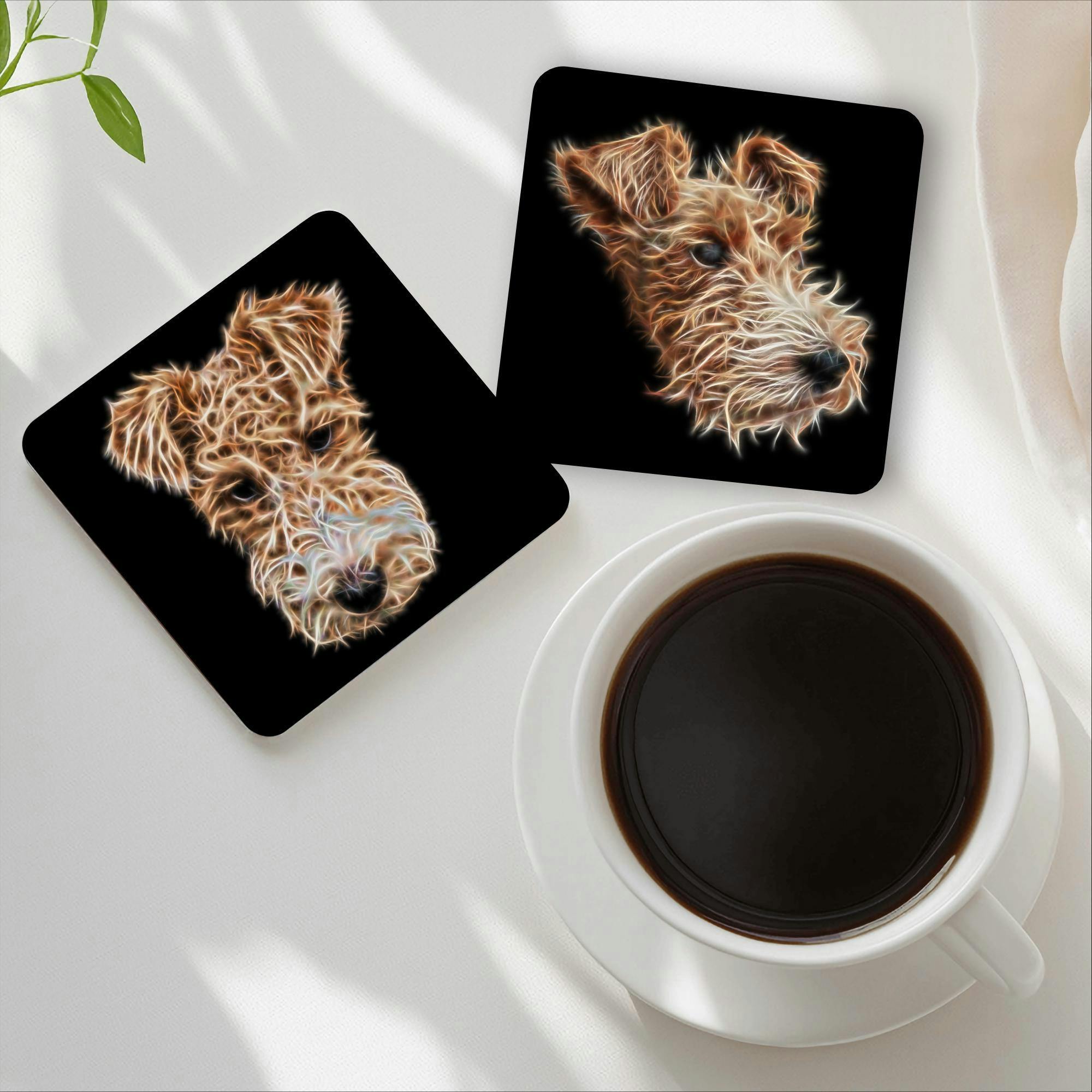 Wire Hair Fox Terrier Coasters, Set of 2, with Stunning Fractal Art Design.